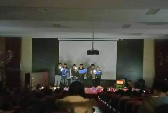 11月30日,迎着末秋的微风,怀着激动的心情,我系迎来了2016学年度纪念一二·九运动及表彰暨换届大会活动,此次活动目的是纪念一二·九爱国运动和表彰那些过去一年为我系工作而默默付出的小伙伴们,以及那些用自己的努力取得成功的同学们;及计信系学生会的换届交接。当所有前期准备一切就绪后,上天给我们晚会开了一个玩笑——停电,也是因为这个,让我们感受到一份神秘和奇幻,让现场的计信系学子更加团结。大家纷纷打开手电筒,一点、两点、三点,当越来越多的灯光交汇,我们的舞台亮了,我们的心也亮了。