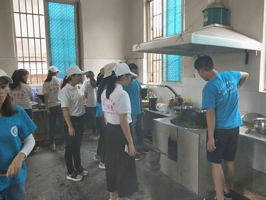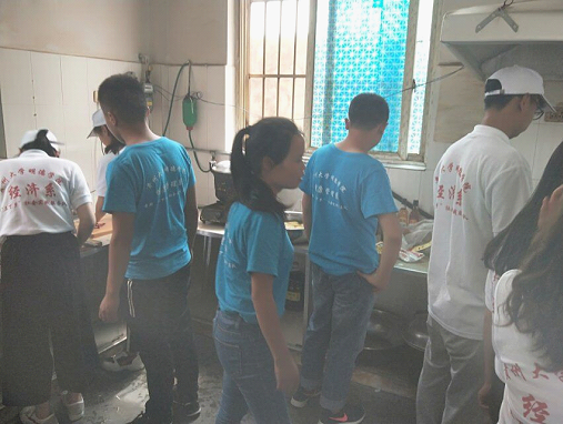 我们两个系分别派出同学去打扫食堂,打扫操场和教室,干得热火朝天。经过同学们的齐心协力,我们终于收拾完毕。