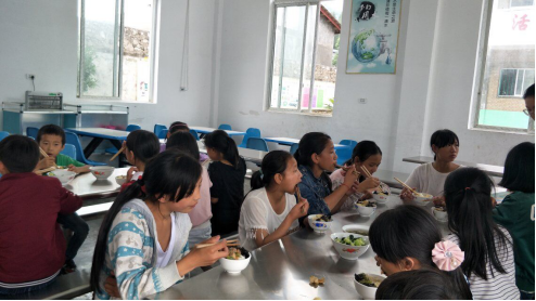 中午离家远的小朋友留下来和我们一起吃午餐,整个食堂都充满了愉快的氛围。