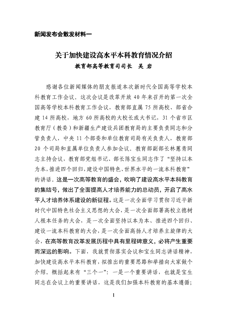 陈宝生在新时代全国高等学校本科教育工作会议上的讲话