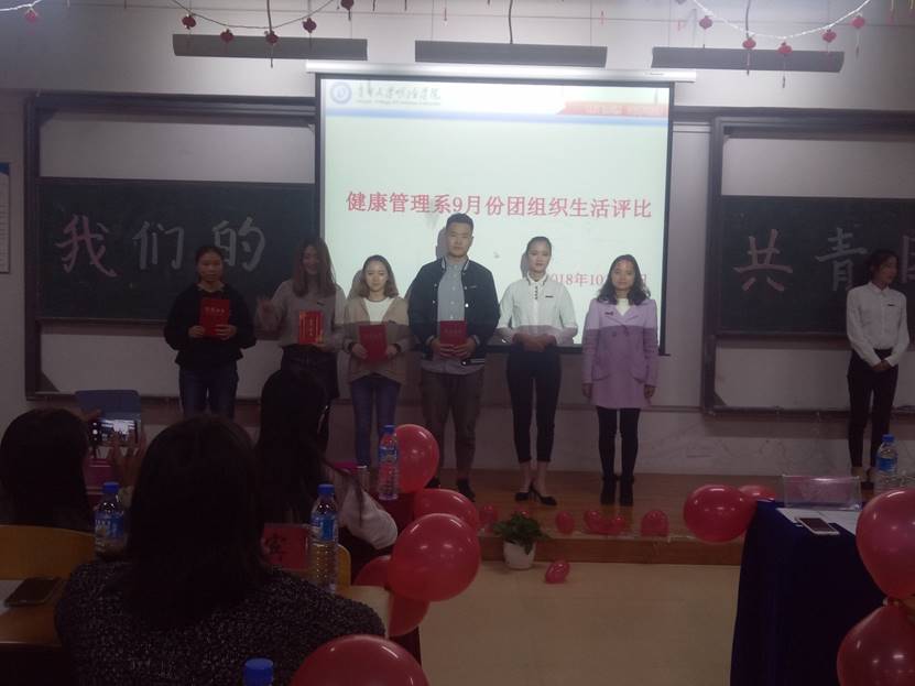 最终公事1701班在本次活动中获得第一名,环境1701班获得第二名,环境1801班获得第三名,张丽老师上台为前三名颁奖并合影留念。至此,本次团组织生活评比活动在同学们热烈的掌声中圆满结束。