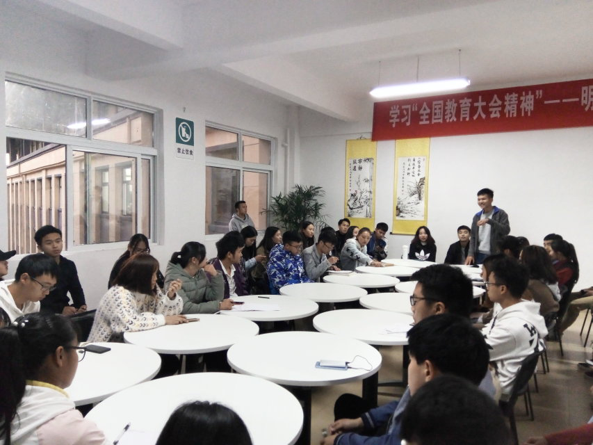 2018年11月28日,贵州大学明德学院信息工程系举办了学生干部交流会,此次大会旨在促进学生干部了解学生组织的发展和规划,坚定学生干部理想信念,加强学生干部间的沟通交流,便于日后工作的开展,提高工作效率。