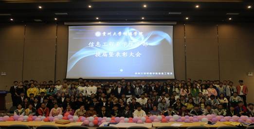 (供稿/供图 办公室/宣传部 胡英楠/江浪)2019年10月11日19:00,贵州大学明德学院信息工程系团总支学生会在图书馆学术报告厅举行信息工程系学生干部换届暨表彰大会,参与本次活动的嘉宾有学院党委副书记金明辉同志,信息工程系系主任江奇峰老师,信息工程系党总支副书记王朋虎老师,教学科研处王尚老师,信息工程系张兰波老师,李双飞老师,其他各系团学老师及主席团代表。
