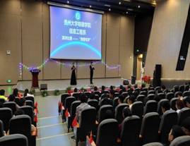 (供稿/供图 办公室/宣传部 罗江勤/白兴强)为庆祝新中国成立七十周年,2019年11月12日晚19:00,贵州大学明德学院信息工程系团总支学生会举办以“青春有梦”为主题的演讲比赛,莅临本次活动的嘉宾有贵州大学明德学院信息工程系团总支书记张兰波老师和各系学生会主席团代表。