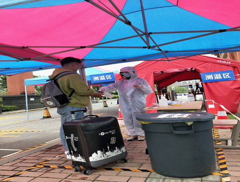 本次返校工作分为省内通道和省外通道。分别进行体温测量、核验学生身份,核验贵州健康码、国务院行程码、电子返校同意书、收取返校承诺书,鞋底和行李消毒,手部消毒和更换口罩,再次测温等环节。把控好每一个环节,注意每一个细节,确保校园安全。