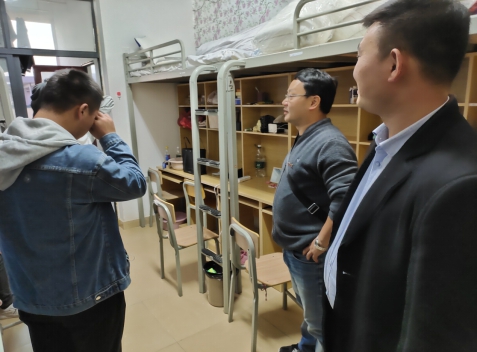 为快速拉进辅导员与新生距离加强辅导员对新生情况的了解,防止诈骗人员与推销人员扰乱新生宿舍友好环境氛围,我系辅导员老师2020年10月10日19:00走访新生寝室。走访过程中,辅导员老师与同学们面对面交流,亲切慰问新生入学基本情况,同时针对各个寝室可能存在的安全隐患进行了排查,确保每一名同学能够住在一个安全良好的学习生活环境中。
