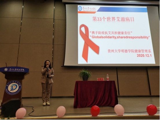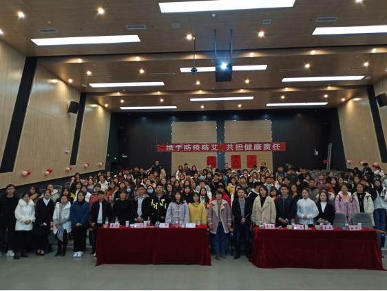 (供稿/健康管理系 供图/宣传部)艾滋病是世界性的重大公共卫生问题和社会问题,已对人类生存和发展构成严重的威胁。近年来,青年学生艾滋病疫情受到社会广泛关注,为进一步提升我院学生知艾预防艾普及工作,加强学生公共卫生防控知识教育,在第33个艾滋病日到来之际,我院健康管理系于12月112:30在学院图书馆报告厅举办了携手防疫防艾共担健康责任”艾滋病预防暨新冠疫情防控知识讲座本次讲座由我院健康管理系主任龙霞老师健康管理系公共事业管理教研室主任宋达老师主讲。贵州大学明德学院副院长杨波、健康管理系党总支书记杨鹏、健康管理系团总支书记冯文以及350名学生代表参加了本次活动