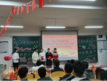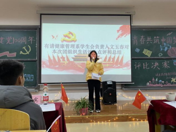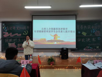 (供稿/刘芹 供图/宣传部)忆往昔峥嵘岁月,展未来任重道远,我们伟大的中国共产党迎来了她100周年华诞,为激发广大共青团员、青年增强热爱党、拥护党、忠于党的意识,我系于2021年3月21日19:00在F305教室举办以“喜迎建党100周年,青春共筑中国梦”为主题的团组织生活评比活动。莅临本次活动的嘉宾及评委代表有:院团委组织部代表陆志美、智能工程系组织部负责人王涛涛、信息工程系组织部代表罗玉雍、土木工程系组织部代表龚毕祥、经济管理系组织部代表杜钰、数字传媒系组织部代表李朝兵、健康管理系团总支学生会负责人居荣萍和文玉春、健康管理系学生会的其他成员以及各班观众代表。