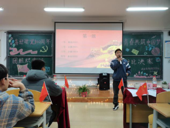 本次进入决赛的班级为八个,分两组进行。围绕“喜迎建党100周年,青春共筑中国梦”主题,各班讲解员通过用PPT来讲解本月本班团组织活动的开展。