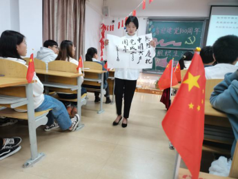 紧接着是第二组参赛班级上台进行解说,他们有的用现场提问的方式让现场更多同学参与到活动中来,有的则是通过展现有关建党主题活动作品,让大家更加深刻的了解党的知识,同时也让活动现场的气氛更加活跃。