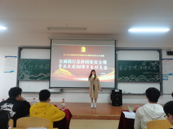 接下来是由各参赛人员上台演讲。认识到位,行动才能自觉,实践才有方向。参赛人员们倡导大家要正确认识国家安全形式,增强“安而不忘危”的忧患意识,才能在安平年代绷紧安全之弦。每个参赛人员对国家安全观都有各自的独特的想法和理解,使得此次活动内容更加丰富多彩也让在场的观众了解到了更多关于国家安全观的知识。