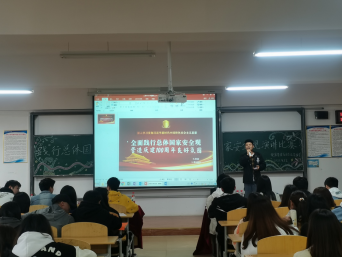 (供稿 陈浪/供图 宣传部)为普及大学生的国家安全知识,筑牢国家安全人人有责,国家安全人人尽责的思想意识,形成国家安全人民防线的大安全观。我系于202141212:30F205教室举办践行总体国家安全观,营造庆祝建党一百周年的良好氛围”的演讲比赛。莅临本次活动的嘉宾及评委有:健康管理系团总支学生会第一副书记刘章贵,健康管理系团总支学生会负责人文玉春,健康管理系团总支学生会负责人居荣萍,健康管理系团总支学生会组织部负责人黄富华,健康管理系团总支学生会宣传部负责人何睿,健康管理系团总支学生会素拓部负责人杜念洁,健康管理系团总支学生会生活部负责人吴俊杰以及健康管理系团总支学生会文艺部负责人刘江燕。