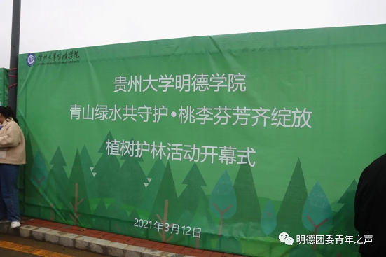 新闻网讯(团委/肖蕊 宣传部/陈圆朋 摄影/李祎迪)2021年3月12日,我院在篮球场举办“青山绿水共守护•桃李芬芳齐绽放”植树节护林活动。参与本次活动的嘉宾有贵州大学明德学院党委书记郭林桦、学生工作处处长佟春雨、团委书记肖蕊,以及各系教师、学生代表。