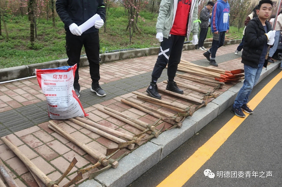 随后,老师与学生代表领取植树牌,参与桂花林立牌仪式。活动正式开始,各系代表依次领取工具,到达指定的地点施肥除草。