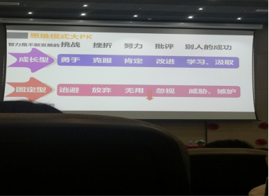 近日,学院开展由罗丹阳老师主讲的《成长性思维模式培训》的知识讲座。
