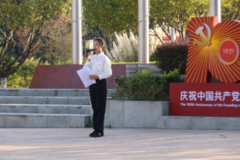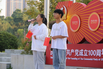 演唱社同学带领全场师生共同合唱《今天是你的生日》,提前为祖国母亲庆生,合唱结束,全体师生共同发出“请党放心•强国有我”的时代心声。最后,全体师生合影留念,本次活动圆满结束。