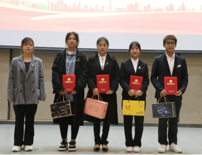 各团支部解说结束后,主持人公布比赛结果,最终经济管理系财管2003团支部获得第一名,健康管理系环境2001团支部获得第二名,土木工程系工管2102团支部获得第三名,同时信息工程系通信2001支部杨耀松同学获得最佳解说员,团委田婷老师为获奖选手颁发奖状、奖品并合影留恋,伴随而来的是热烈的掌声。