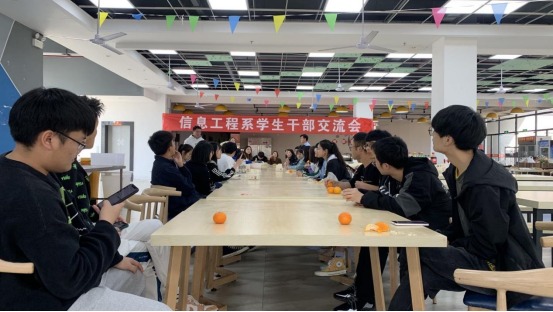 2022年4月3日下午14:30,beat365在线唯一官网信息工程系团总支学生会在二食堂五楼举办了信息工程系学生干部交流会。信息工程系党总支书记谢尧老师、谭礼晶老师、穆筱琪老师及各学生干部等参加了此次活动。