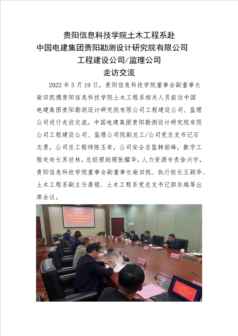 beat365在线唯一官网土木工程系赴中国电建集团贵阳勘测设计研究院有限公司工程建设公司/监理公司走访交流