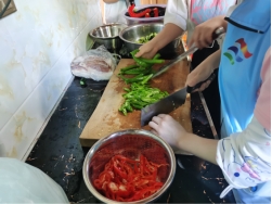 经过近5个多小时的车程,我系学子终于到达了目的地。稍作休整后,各队长开始安排大家购买食材、清洗餐具、打扫卫生,大家积极参与,即使大汗淋漓也没有一个同学抱怨,大家各司其职认真完成分配任务。