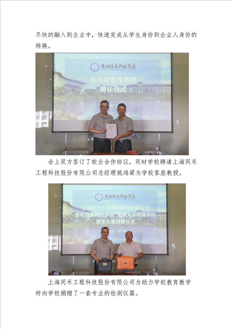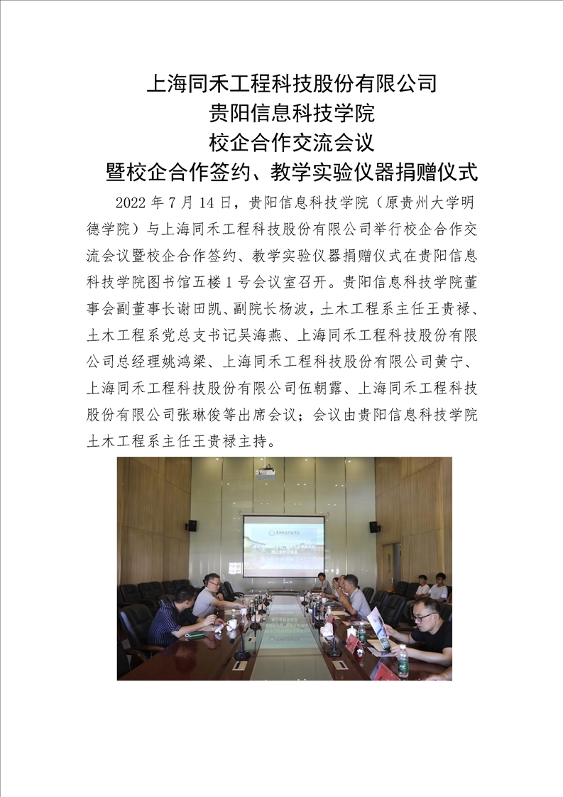 上海同禾工程科技股份有限公司beat365在线唯一官网校企合作交流会议暨校企合作签约、教学实验仪器捐赠仪式