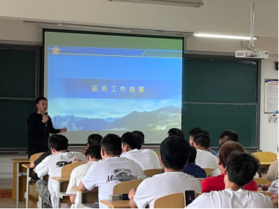 我系党总支书记丁操老师向同学们讲述了许多大学生士兵的先进事迹,并表示强大的国家和军队需要先进的人才支撑。随后老师从“入伍账”、“前途账”、“学业账”、“就业账”、“经济账”五方面详细介绍了大学生入伍的优抚优待政策,并向同学们介绍了入伍的基本要求与条件程序。最后,丁操老师鼓励同学们要积极应征入伍,要到军营中去,努力争做明日英雄。