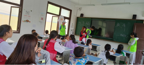 9:30之后同学们在教室给化屋小学的小朋友们进行辅导和宣传。和他们一起互动,玩游戏,唱歌,跳舞等。在这寂静的校园内,有了这些小朋友也多了几分风趣。