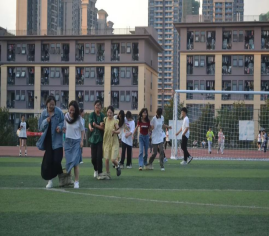 “嫦娥奔月”活动在一号足球场举行。参加人数约300人,大家积极、踊跃的参加游戏,本游戏主要考验大家的合作能力和默契度。游戏开始,由两个人组成一组,每组参赛者在起点分别绑着左腿和右腿,运用弹跳的方式到达终点即为成功。在游戏中和自己同队的人互帮互助一起到达终点。