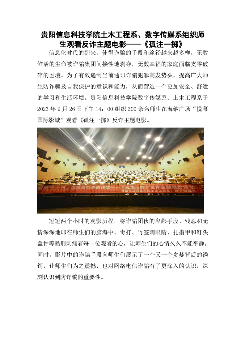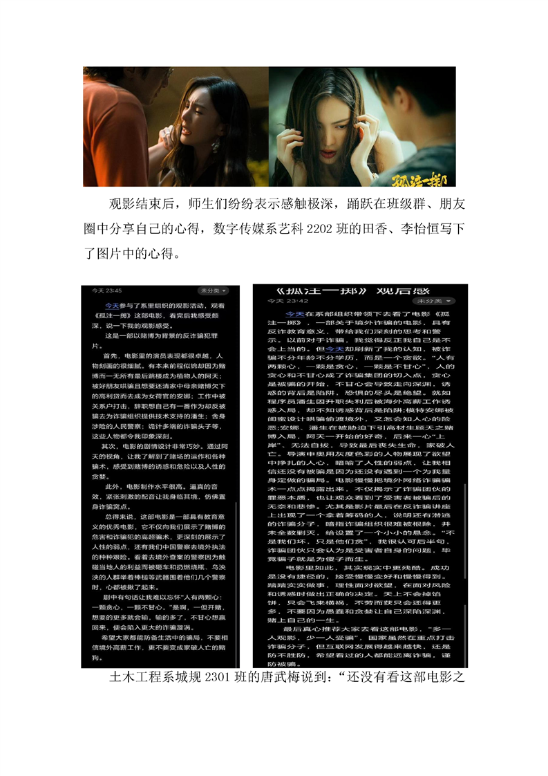 beat365在线唯一官网土木工程系、数字传媒系组织师生观看反诈主题电影——《孤注一掷》