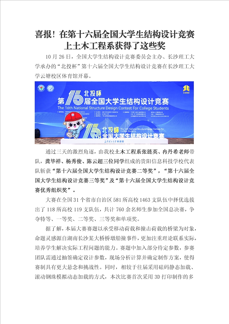 喜报!在第十六届全国大学生结构设计竞赛上beat365在线唯一官网获得了这些奖