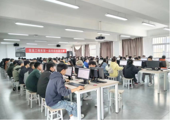 为了进一步推动信息工程系学生的网络技能水平的提高,切实加强学生的实践能力和创新意识的培养,信息工程系于2023年10月14日下午在A214机房成功举办了第一届网络技能大赛。本次比赛吸引了信息工程系各年级的学生参加,本次共计200余名选手报名参加了比赛。比赛主要考核网络理论知识,内容涵盖了计算机网络的各个方面。