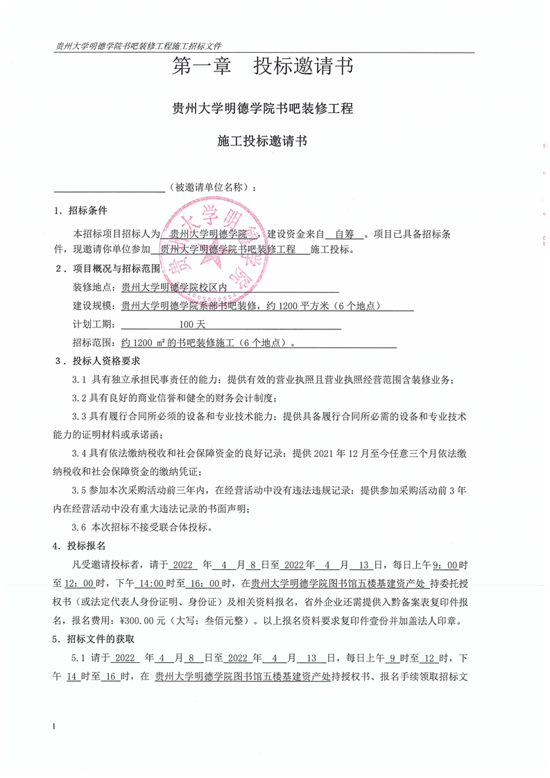 书吧装修工程施工邀请书