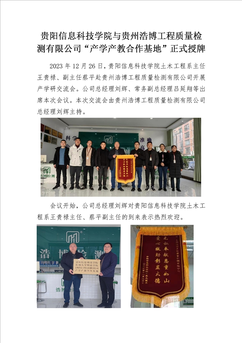 beat365在线唯一官网与贵州浩博工程质量检测有限公司“产学产教合作基地”正式授牌