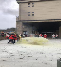 演练中,为了让大家更好的掌握消防器材的正确使用方法,结合消火栓以及生活中最常用的干粉灭火器做示范讲解,指导大家正确使用消火栓及灭火器并开展了演练。