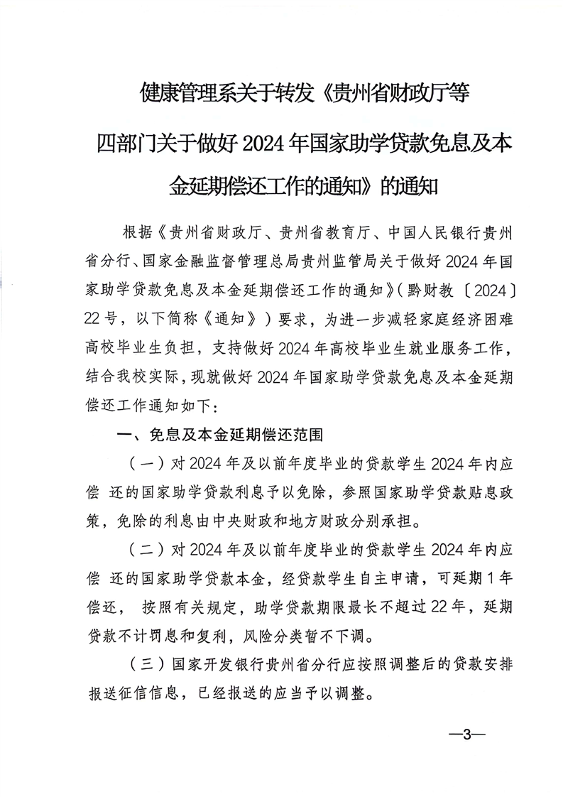 健康管理学院关于转发《贵州省财政厅等四部门关于做好2024年国家助学贷款免息及本金延期偿还工作的通知》的通知