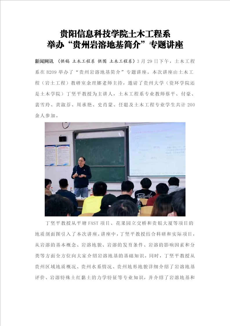 beat365在线唯一官网土木工程系举办“贵州岩溶地基简介”专题讲座