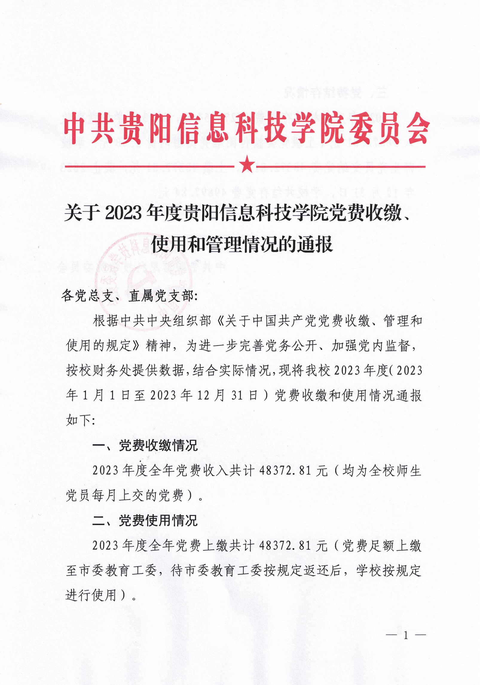 关于2023年度beat365在线唯一官网党费收缴、使用和管理情况的通报