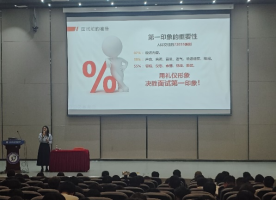 讲座中,周老师深入浅出地讲解了如何制作一份面试官喜欢的简历、求职者在面试前需要做什么样准备、面试过程中的仪态以及面试结束后的告别礼仪等四个方面展开了讲解。