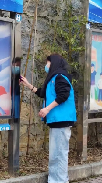 对于宣传栏内的宣传内容,志愿者们也逐一检查,在清理过程中体现出不怕脏、不怕累的精神,积极主动的克服各种困难,面对难以清理掉的小广告,小伙伴们徒手将其撕离,不给它们留下一丝“生存”空间。同时,大家将宣传栏周边的环境进行清理,美化校园环境。经过志愿者们的清理,宣传栏明亮通透、焕然一新。望着干净整洁的宣传栏,大家也洋溢着灿烂的笑容。清理过后,志愿者们也不忘把清理过程中掉落的纸屑等废弃物打扫干净。