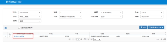 2.查询班级课表:【信息查询】-【推荐课表打印】