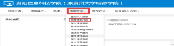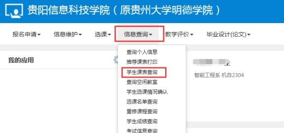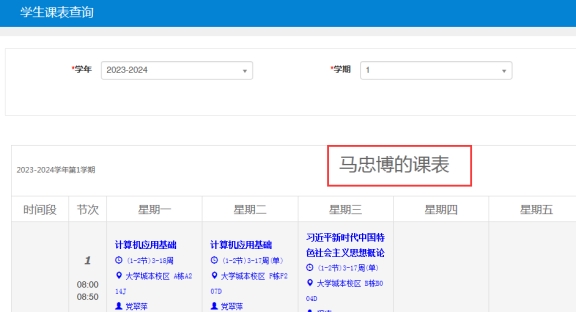 3. 查询学生个人课表:【信息查询】-【学生课表查询】