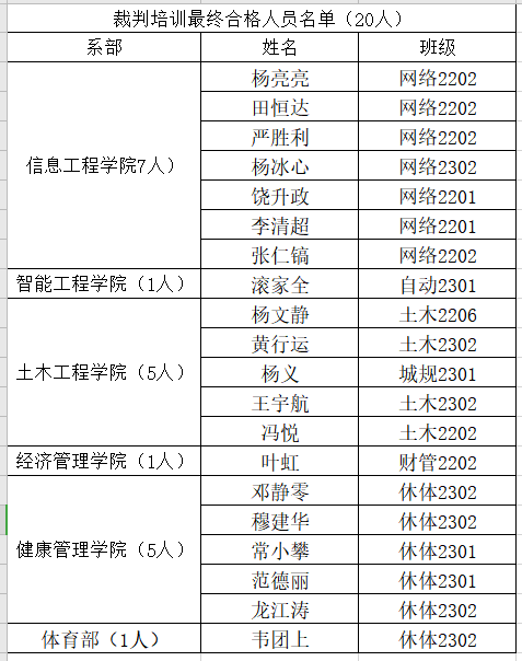 beat365在线唯一官网2024年篮球裁判员考核合格人员名单公示