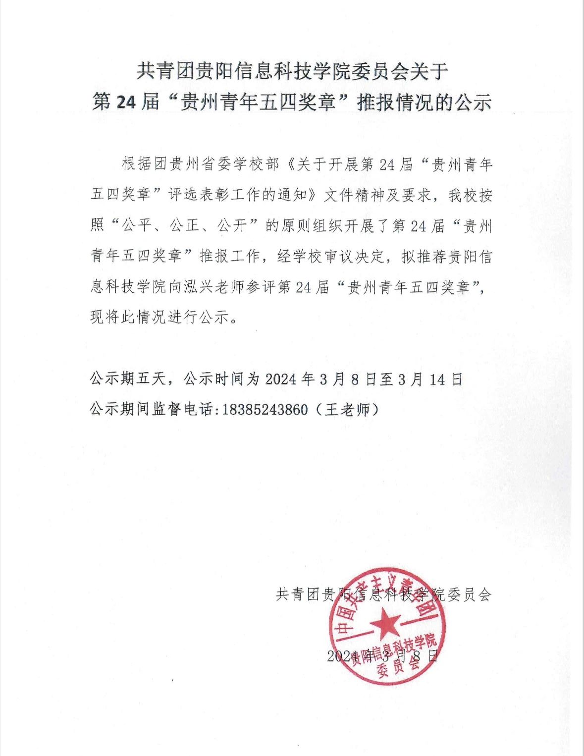 2023-2024年度“贵州省大学生自强之星”奖学金推报人选公示