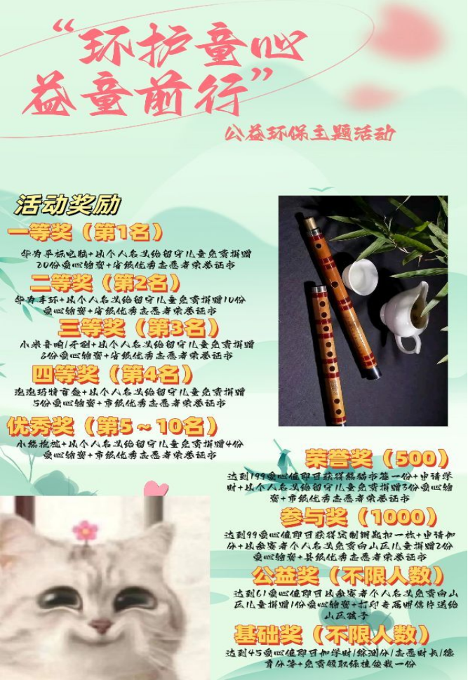 为了培养大学生的绿色环保意识,鼓励大学生以实际行动参与到环境保护中来。近日,beat365在线唯一官网笛箫协会举办了“环护童心,益童前行”的环保公益主题活动。