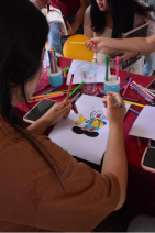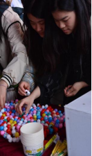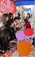 游园会现场,五彩斑斓的气球、各式各样的游戏摊位和互动环节吸引了众多师生的参与。大家或驻足于摊位前,或穿梭于游戏之间,享受着轻松愉快的氛围。活动不仅设置了诸如“投壶”、“涂鸦绘画”、“海底捞月”等富有创意的互动游戏,还有“气球爆破”等释放压力的区域,让师生们能够更好的调适自己的情绪。