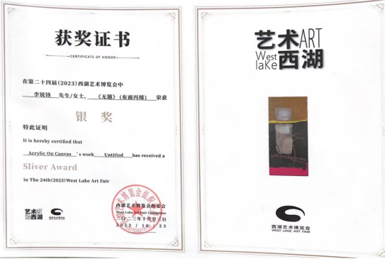 数字传媒学院李锐锋院长的绘画作品在第二十四届西湖艺术博览会中获银奖。