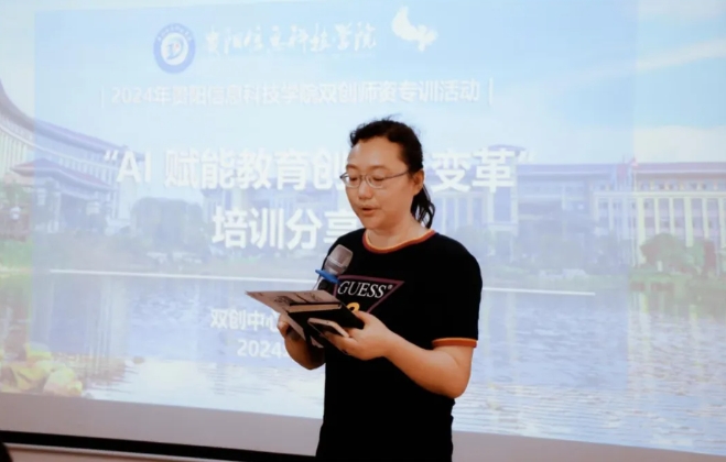 教学科研处的何佳琳老师以“AI 技术给教育发展带来的变革” 为主题,深入剖析了 AI 技术在资源建设、教学教研模式创新等方面 的优势,并强调其在智能辅导、个性化教育、教学评估及科研建设等方面的巨大潜力。