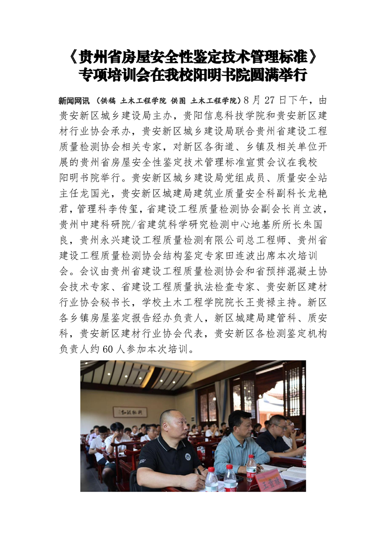 《贵州省房屋安全性鉴定技术管理标准》专项培训会在beat365阳明书院圆满举行