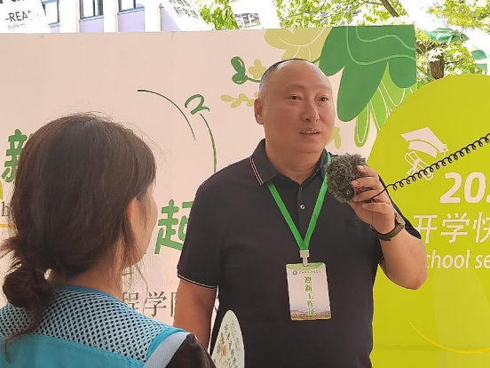 (图为宣传组对新生们进行采访)