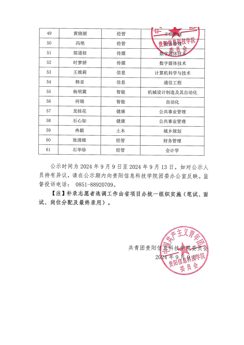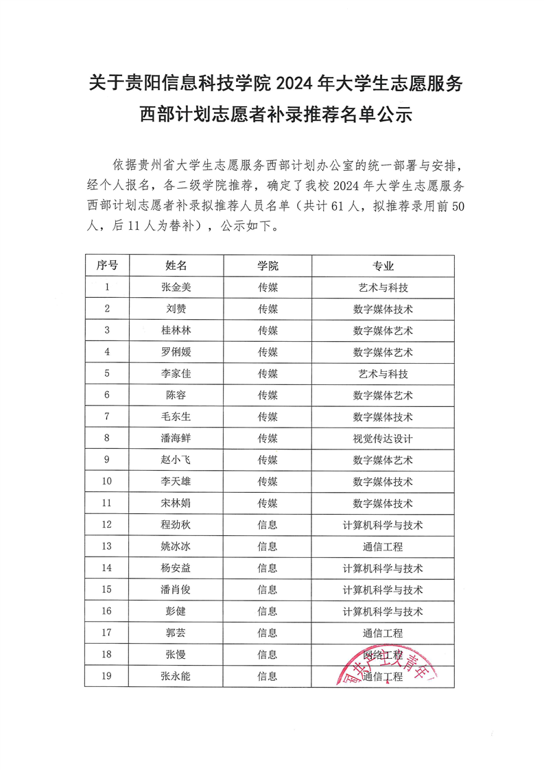 关于beat365在线唯一官网2024年大学生志愿服务西部计划志愿者补录推荐名单公示